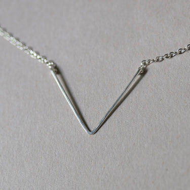 Hand hammered Sterling Silver V shaped pendant on sterling silver chain.