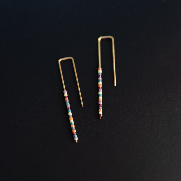 Fun little ear threader spikes measuring approximately 1.75 inches. Lead and Nickel Free brass, and glass beads.