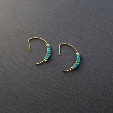 Just under an inch, these are the cutest little half hoops you ever did see. With tiny square turquoise colored beads, these are anything but boring. For the small hoop lovers who still love a little extra something to make it interesting, these are for you.