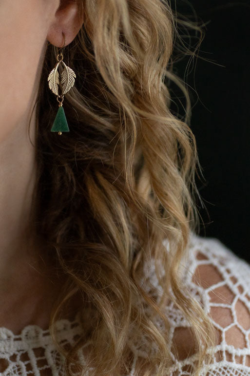 Sometimes I name pieces after places we dream of going, like Egypt. These earrings feel like palm trees and pyramids but also have a bit of that goddess quality to them, so I went with my gut and named them after a city there. I know there are no pyramids in Luxor, but the name suits them. Plus, I do what I want.