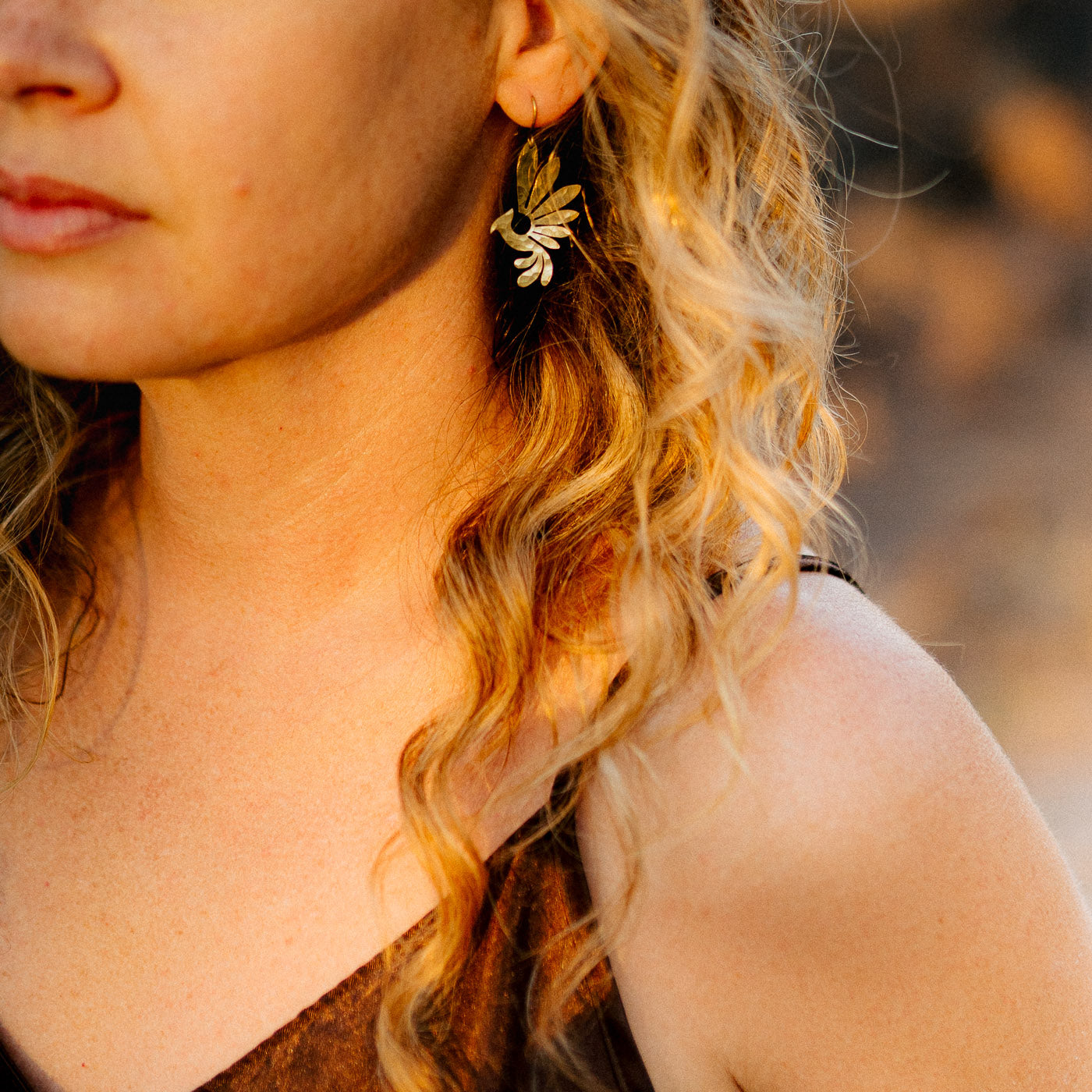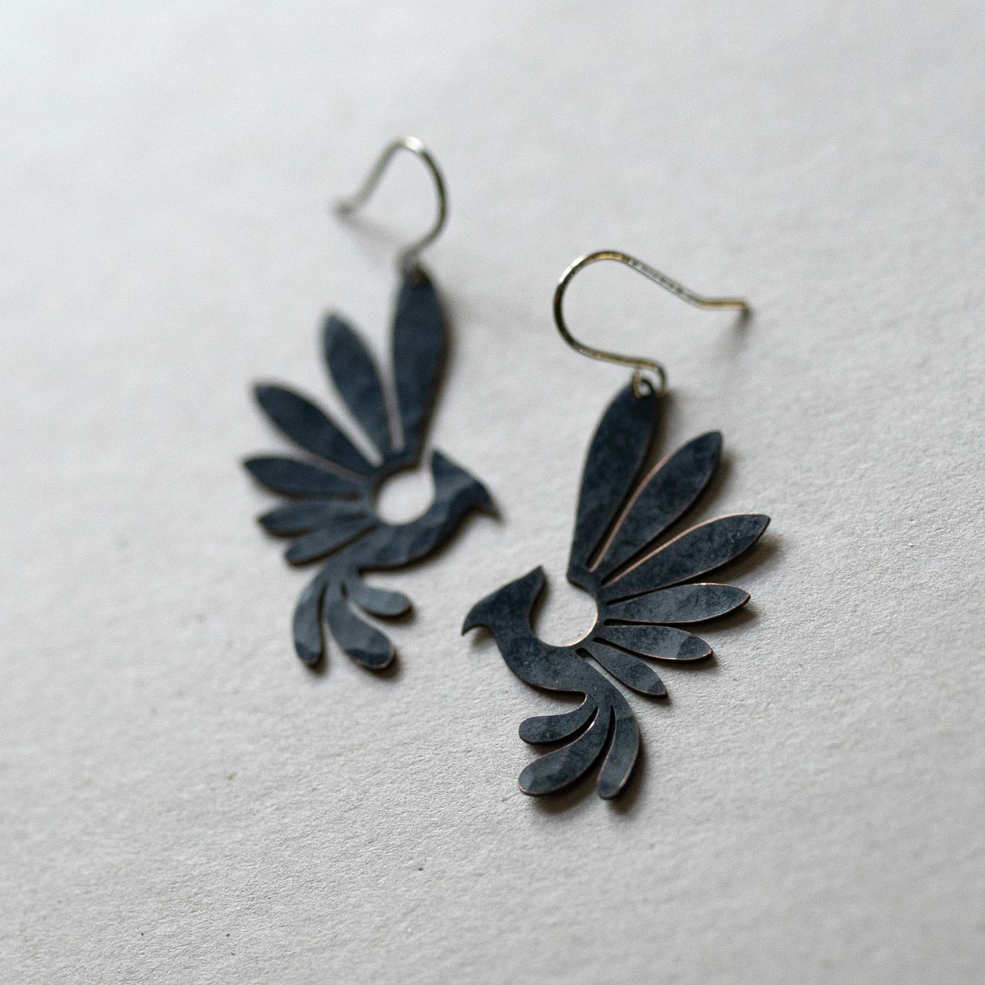 Hand hammered black brass birds on gunmetal ear wires, very thin and extremely lightweight.